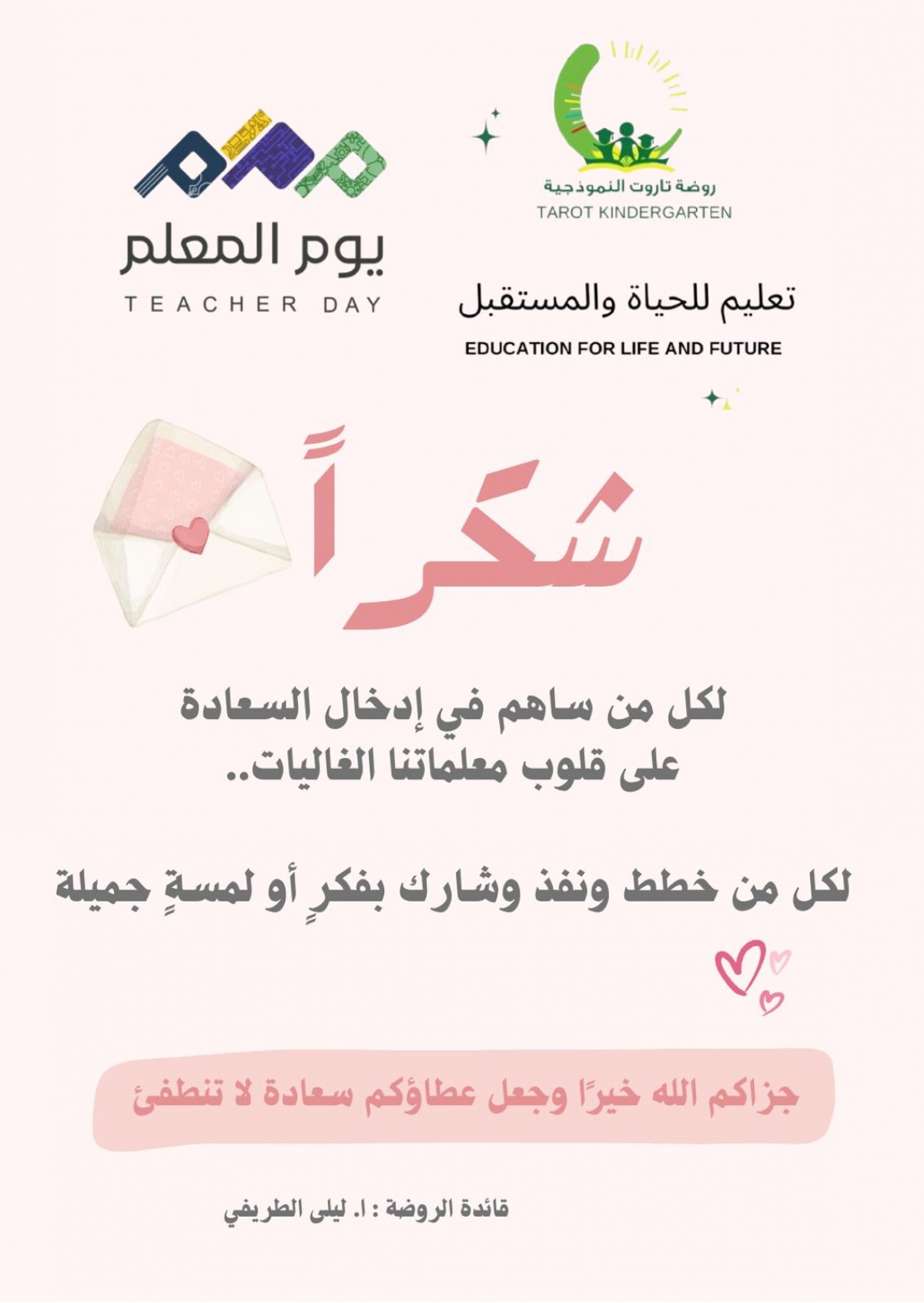 روضة تاروت النموذجية تحتفي بمعلماتها في أسبوع العطاء بيوم المعلم العالمي